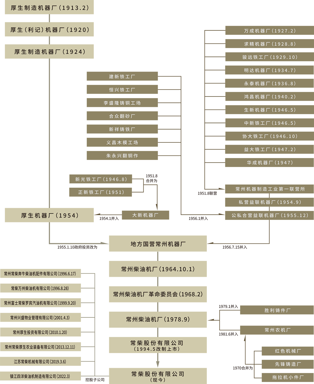 1913年2月,常柴前身企業(yè)厚生制造機器廠由常州民族企業(yè)家奚九如先生憑借愛國的熱情和良知,以實業(yè)救國為宗旨、以振興民族經(jīng)濟為己任而創(chuàng)立,這是常州地區(qū)第一家機械工廠,也是中國最早的內(nèi)燃機專業(yè)制造商之一。當年厚生廠仿造成功出8馬力火油發(fā)動機。