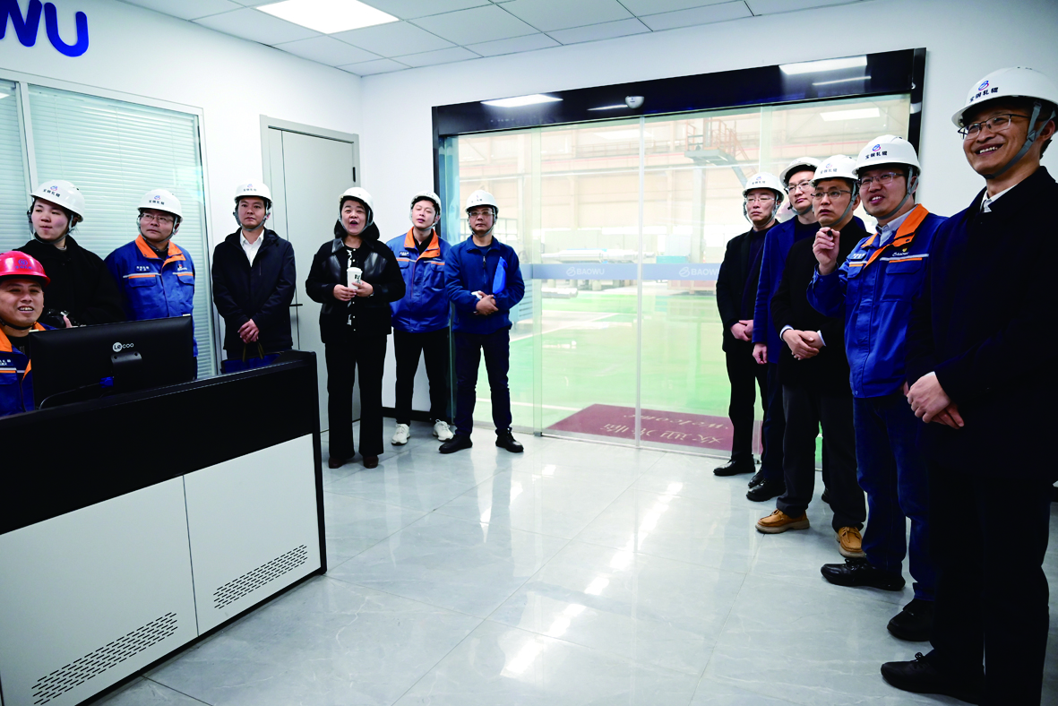 圖為公司領(lǐng)導(dǎo)一行參觀寶鋼軋輥數(shù)字化車間